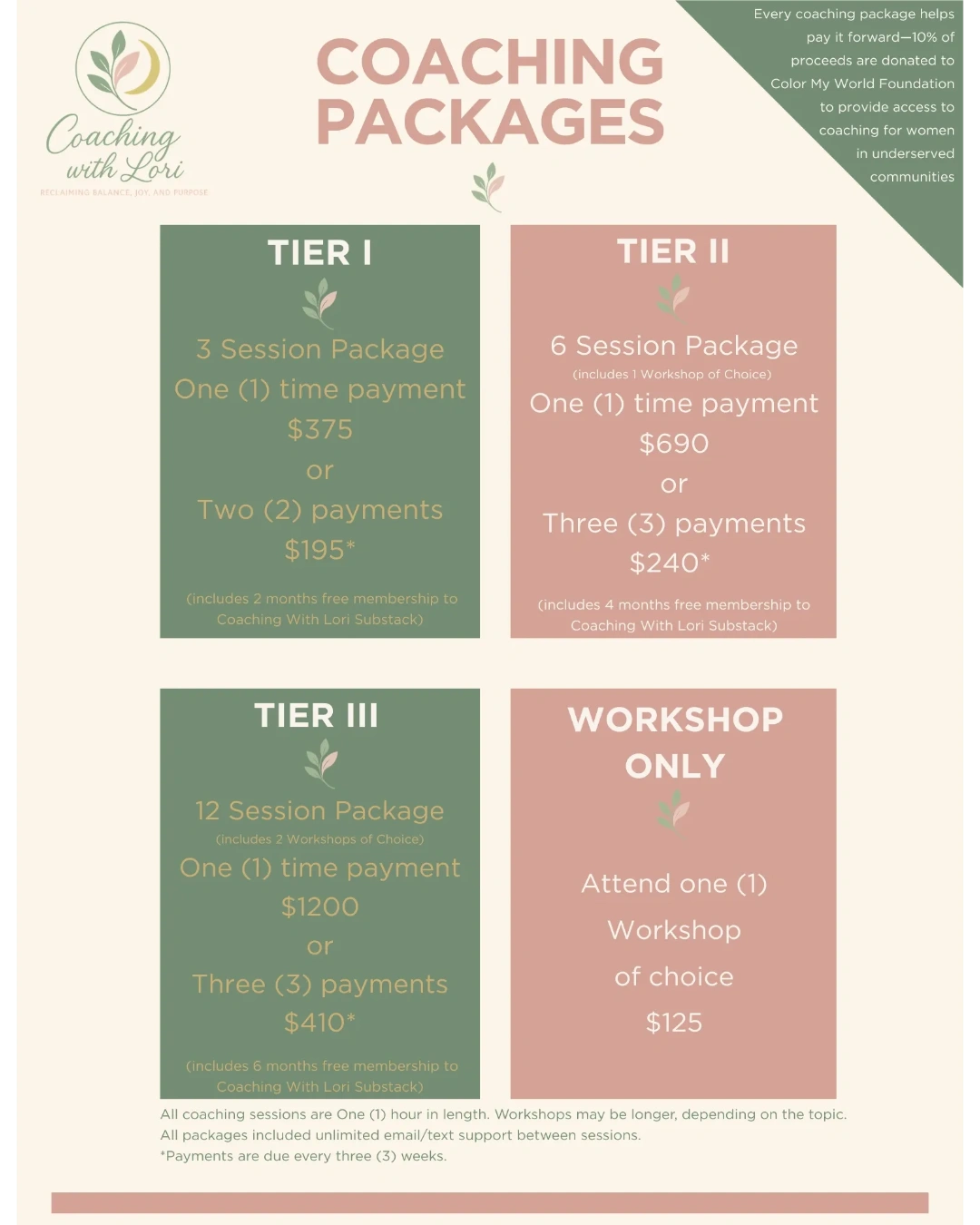 At Coaching with Lori, transformation goes beyond the individual. 10% of every coaching fee is donated to
